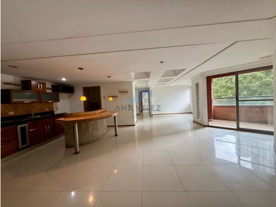 Apartamento de 125 mts distribuido así: salón comedor muy amplio, balcón, cocina abierta, baño social con ducha; zona de ropas independiente muy amplia, alcoba de servicio, estudio independiente, sala de televisión que se puede cerrar a una tercera habitación, alcoba principal muy amplia con clóset de pared a pared, baño muy amplio, espacio para estudio, y balcón; alcoba auxiliar con baño y vestier.