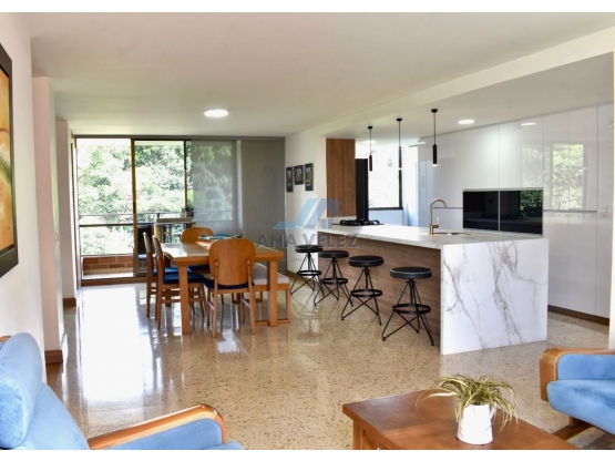 Apartamento de 153 MTS, consta de 3 habitaciones,4 baños,sala comedor con balcón,cocina abierta tipo americano,cuarto y baño del servicio,zona de lavandería,2 parqueaderos. El conjunto cuenta con portería,vigilancia 25 horas,sauna,turco,piscina,salón social ,zonas verdes, zona infantil .Cerca universidad EAFIT,clínica las Vegas, almacenes Éxito .